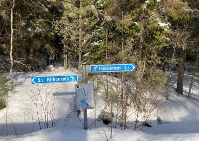 Kirkonkylän suunnasta Häkärinteelle johtavan ladun alkupäässä latupohja on aurattu noin kilometrin matkalta ...