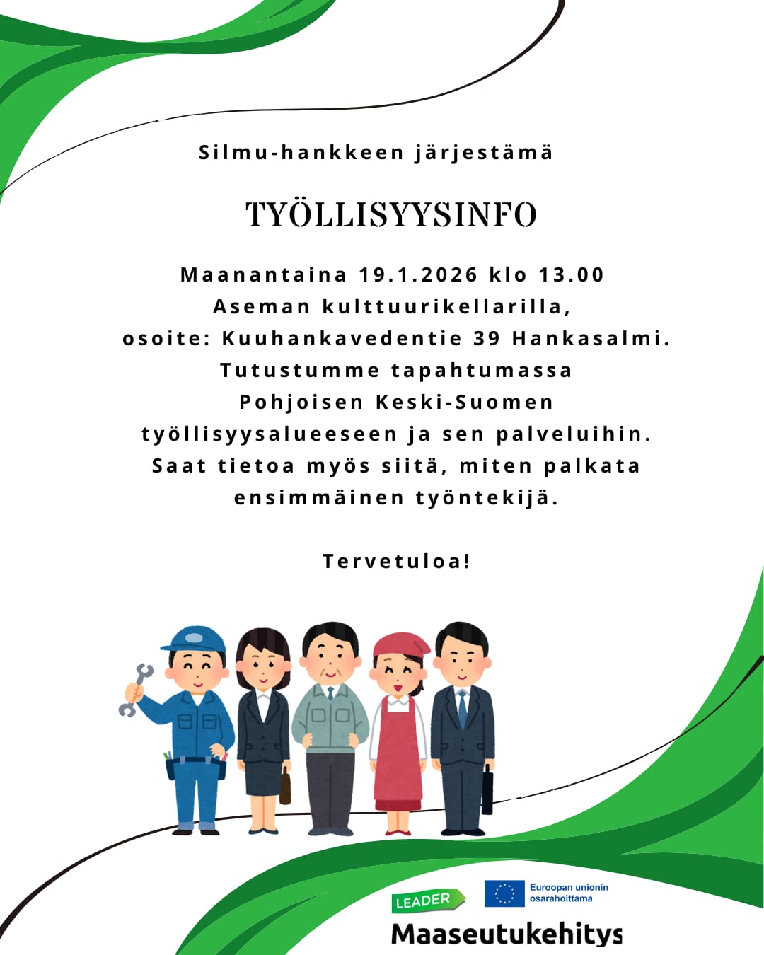 Tutustumme tapahtumassa Pohjoisen Keski-Suomen työllisyysalueeseen ja sen palveluihin. Saat tietoa myös siitä, miten palkata ensimmäinen työntekijä. Tervetuloa!