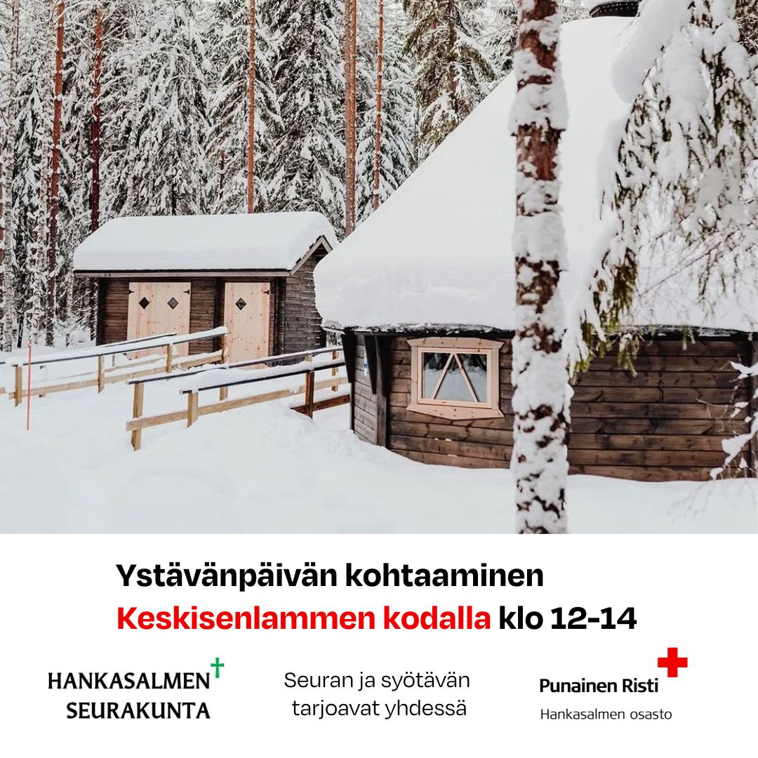 Vietetään ystävänpäivää yhdessä seurustellen. SPR:n Hankasalmen osasto ja Hankasalmen seurakunta tarjoavat grillimakkaraa höysteineen sekä jälkkäriksi lettuja ja kahvia. Paikalla on ystävätoiminnan vapaaehtoisia ja sinun on mahdollista tutustua paikallisen seurakunnan tai Punaisen Ristin toimintaan.